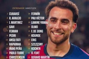 体育资讯4月22日讯 北京时间明天凌晨,巴萨将在西甲第33轮比赛中主场对阵马洛卡,巴萨公布了此役的球员名单,莱万、巴尔德因伤缺席。